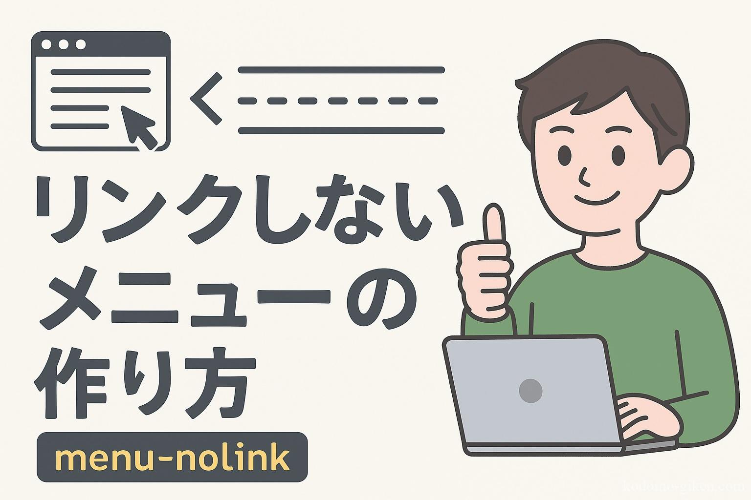 WordPressの標準機能だけでは難しい「ラベルだけのメニュー」ですが、この方法を使えば見やすく、わかりやすいナビゲーションが実現できます。