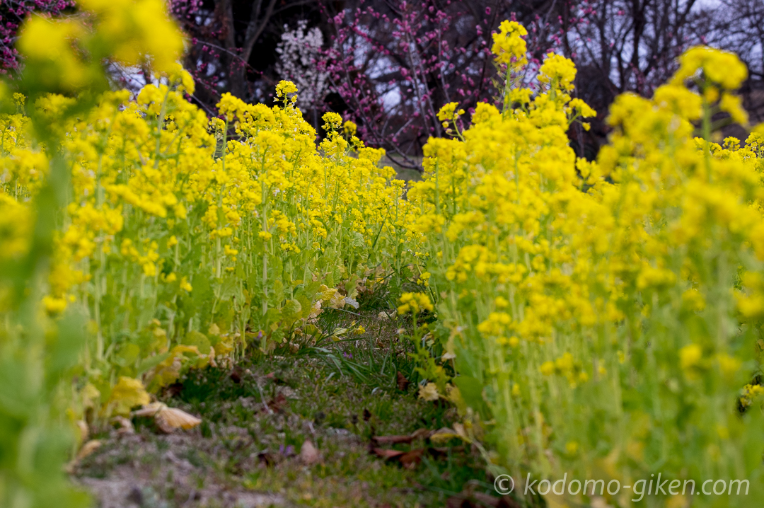 小さな菜の花畑で少しの時間遊んできました。場所は加古川市のみとろフルーツパークです。
