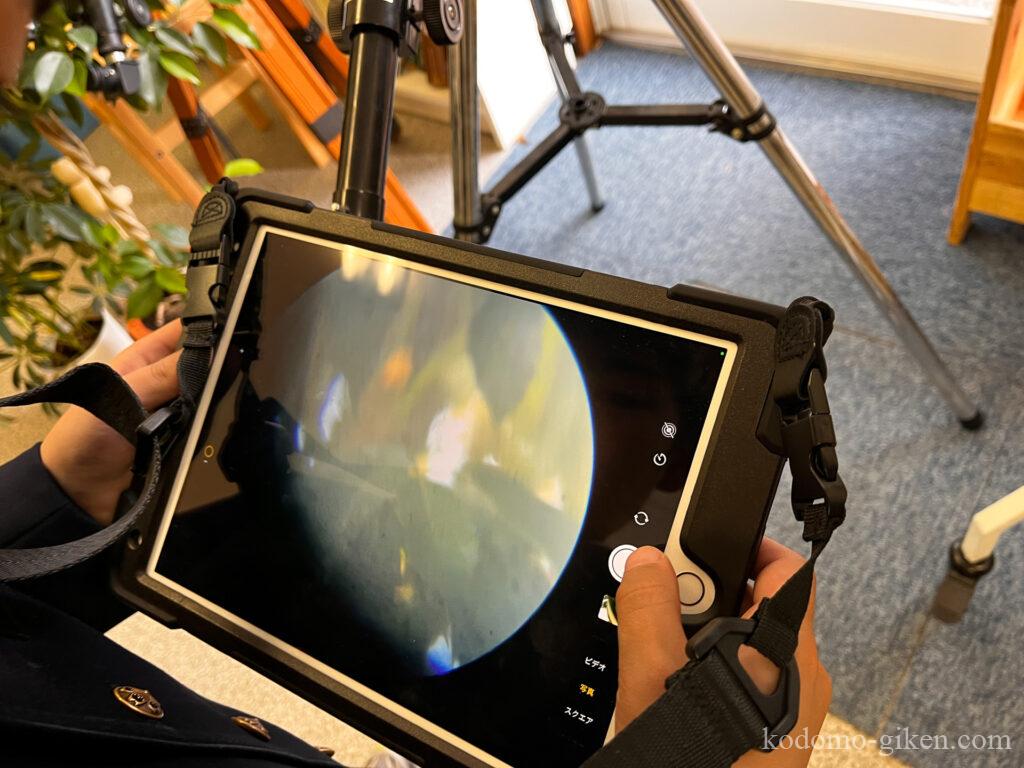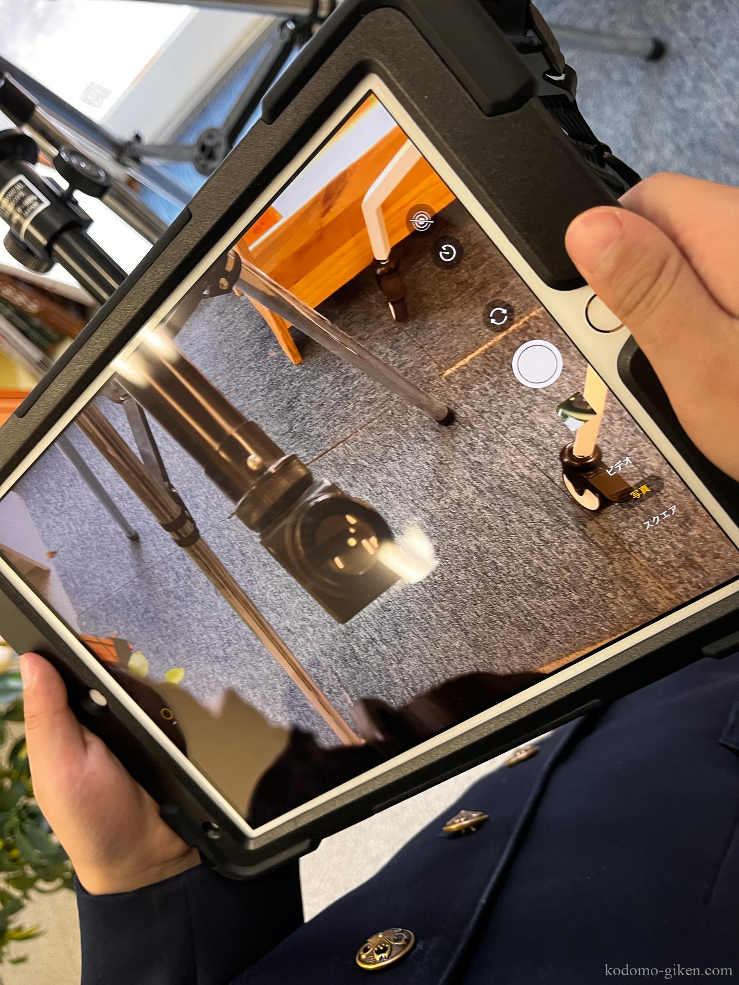 これはさらに難易度があがります。相当難しいです。ちょっとでもiPadが望遠鏡に当たると、視界がずれてしまうからです。