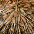 土筆は正式にはスギナといいます。普通の花と違ってコケなどの仲間。種ではなくキノコのように胞子で増えます。 その胞子は下の写真の開いたところに詰まっています。