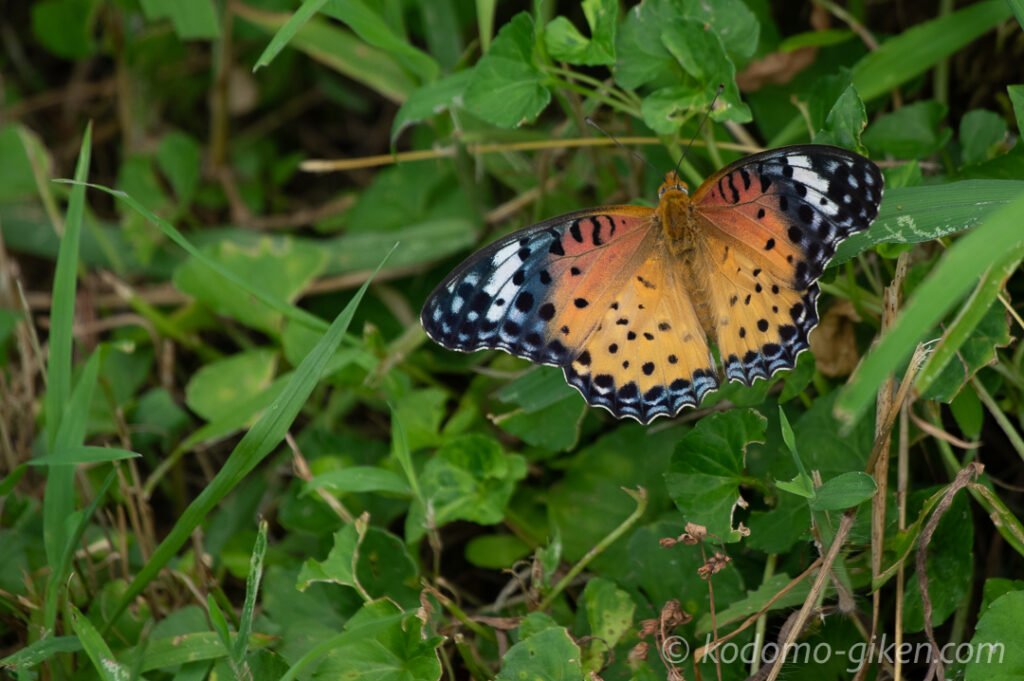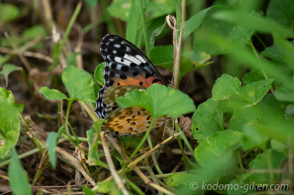 ふと少し先の茂みを見ると、こちらにも1匹のヒョウモンチョウ。1匹で休んでいるチョウでした