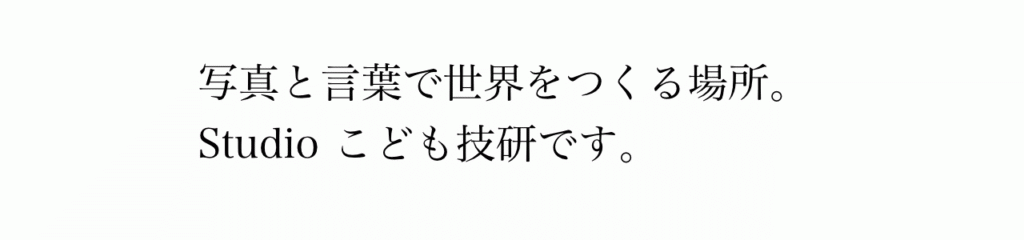 スタジオこども技研は、写真・Web・Apple製品サポート を中心とした、地域密着型の「制作と技術のスタジオ」です。